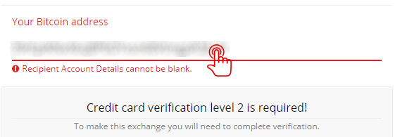 6. Then, paste our Bitcoin address (= our wallet) from the order confirmation page (from step 2 above) in “Your Bitcoin Wallet” field.