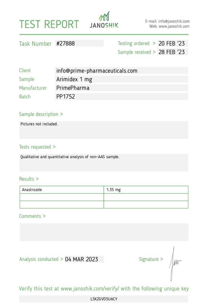 - Product and Laboratory: Anastrozole (Arimidex) by Prime Pharma