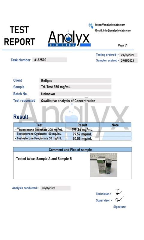 Tri Test (Testosterone MIX with immediate and delayed effect) is a product for a mass gain cycle. Tri Test has exactly the same composition as the highly successful Tri Test. In fact, the diversity of its esters enables it to act in several ways, both in the short and long term. The presence of testosterone propionate means that results can be seen as soon as the day after taking it, while the other esters ensure that high testosterone levels are maintained over a 4-week period. Taking this product will give you :