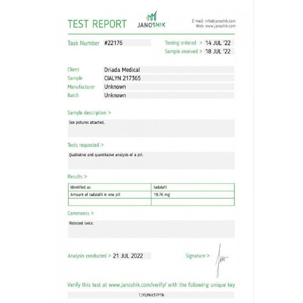Cialyn – Tadalafil 20mg – 20 tabs – Driada Medical