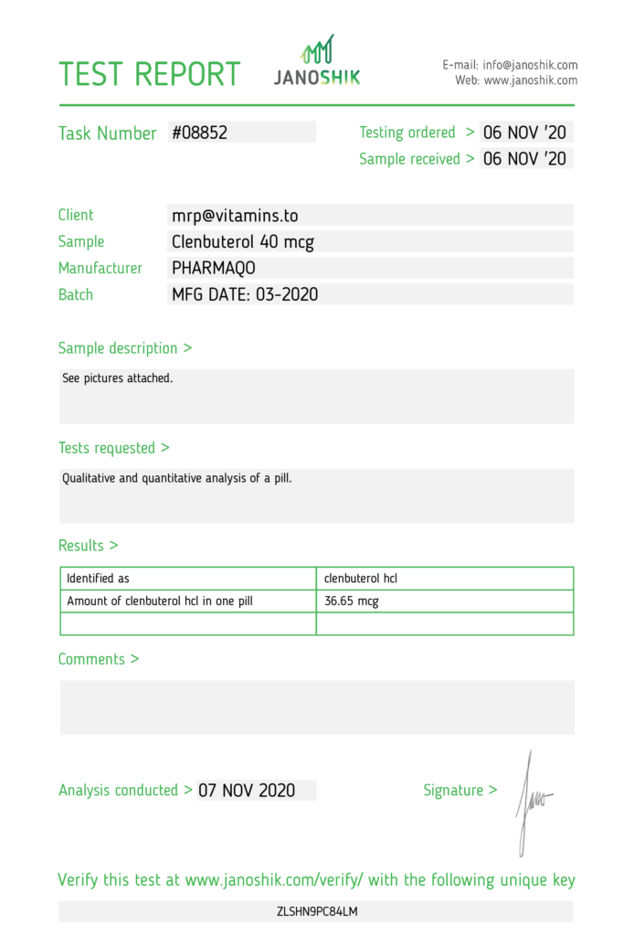 Clenbuterol 40mcg/tab – 100 tabs – Pharmaqo Labs