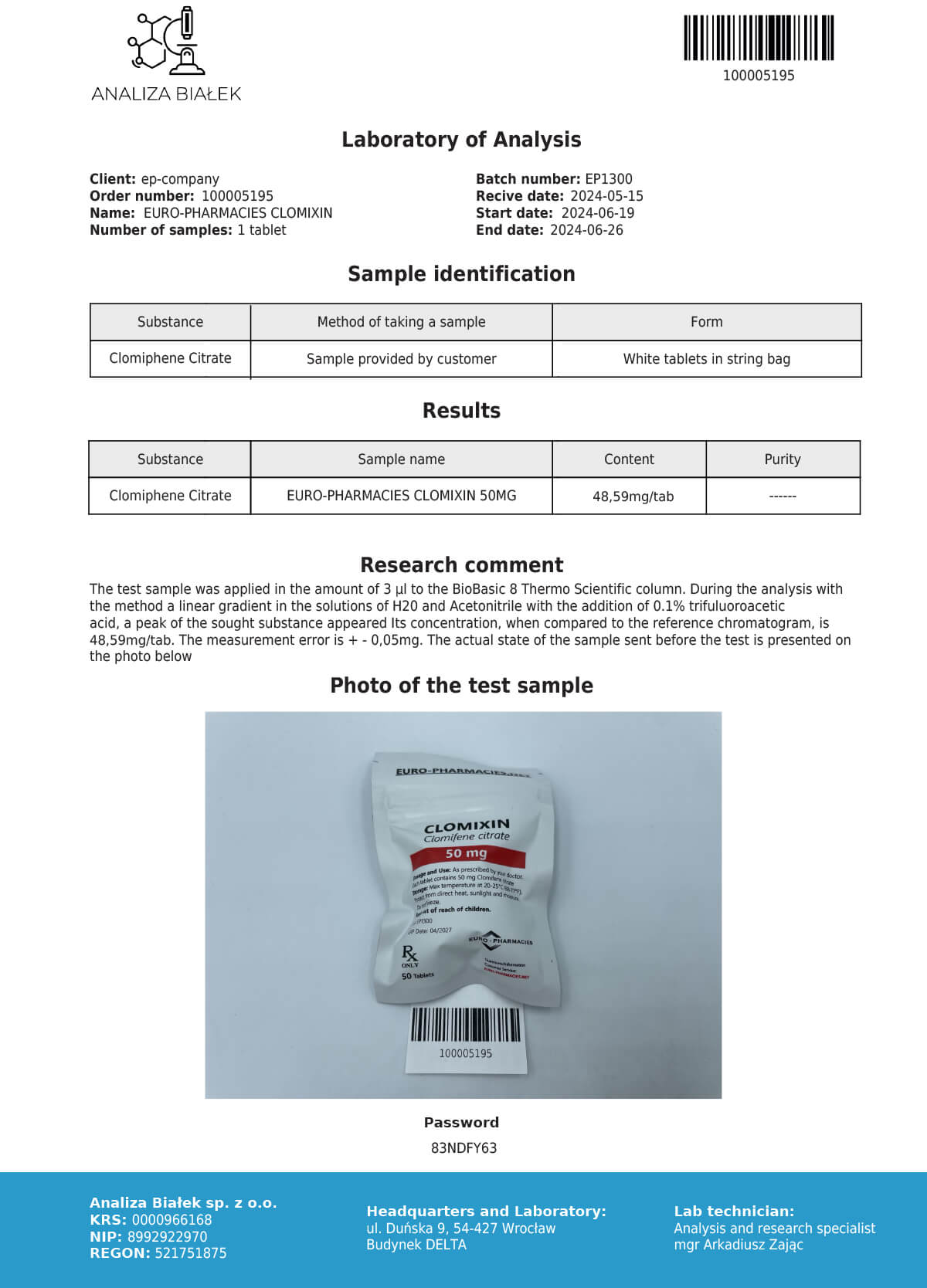 Clomixin (Clomid) – 50mg/tab -50 tab/bag – Euro Pharmacies – USA Domestic
