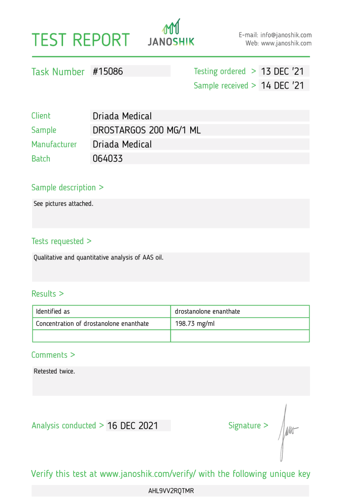 Drostargos – Drostanalone Enanthate 200mg/ml – 10amps of 1ml – Driada Medical