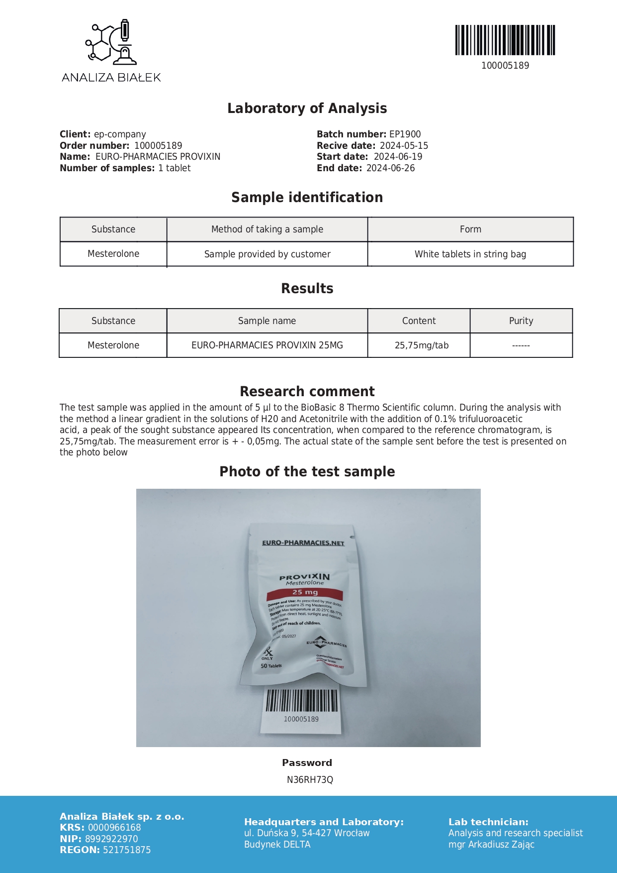 Provixin ( Proviron ) – 25mg/tab, 50 pills/bag – Euro Pharmacies