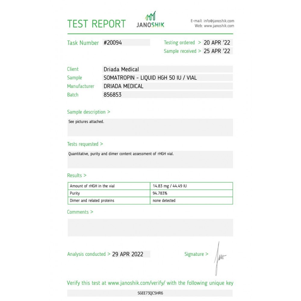 Somatropin HGH Liquid 100iu – 2 x 50 iu – Driada Medical