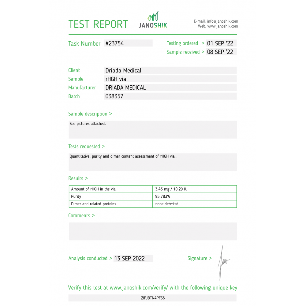 Driada Medical growth hormone (Somatropin) is specifically dosed for a fitness cure or adapted to an athletic lifestyle. In addition to anti-aging benefits, Driada Medical Somatropin accelerates metabolism to burn body fat and increase muscle mass. Overall energy levels are improved, and recovery from exercise is also enhanced.