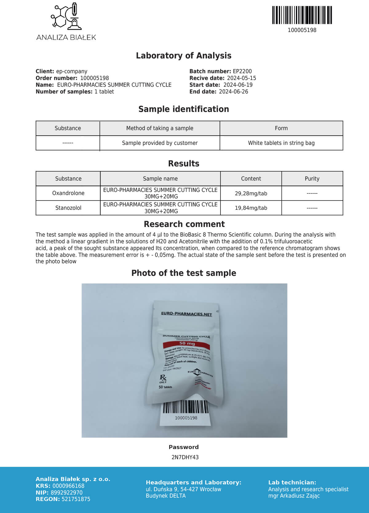 Chemical Name: oxandrolone 30mg + stanozolol 20mg