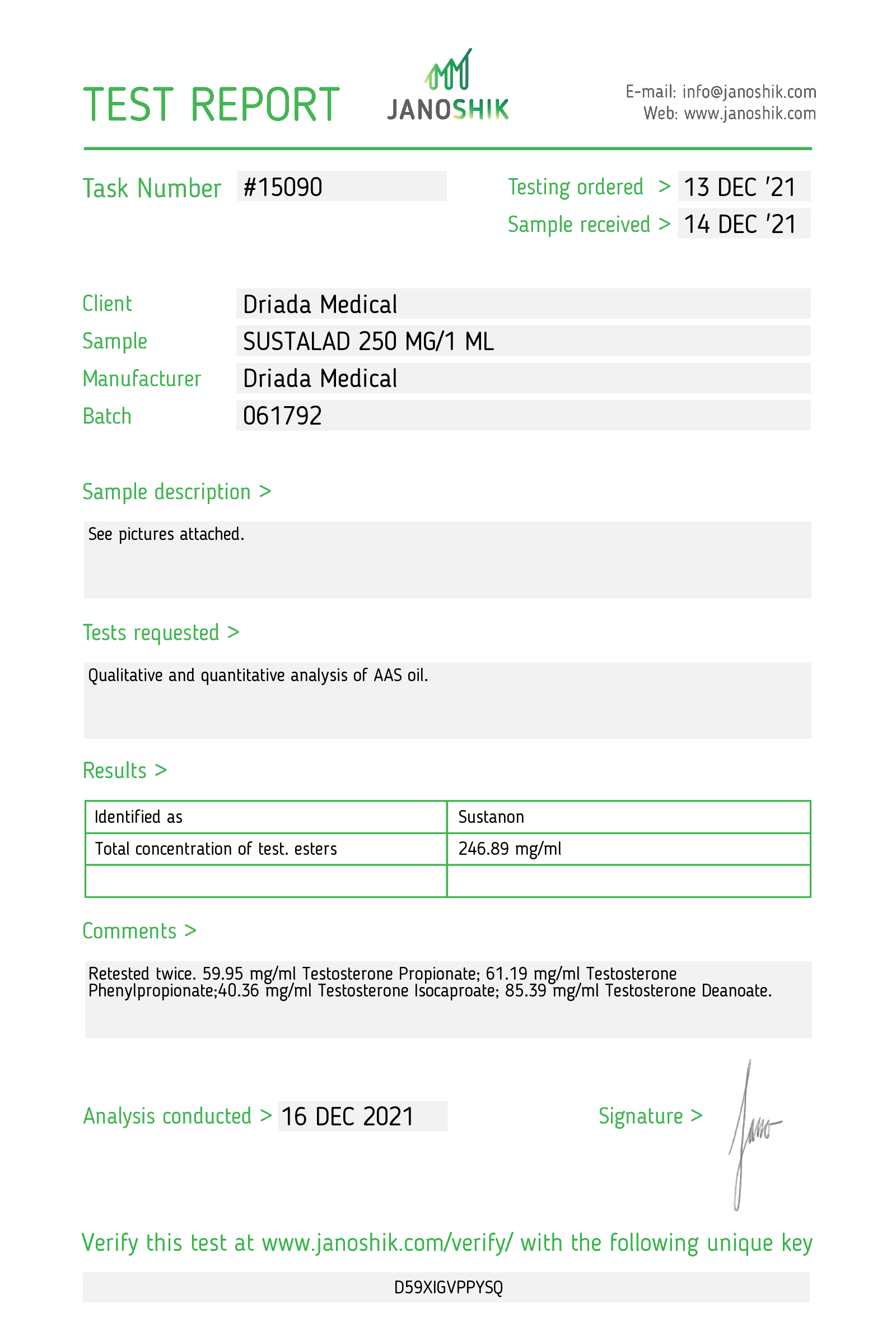Sustalad 250 mg/ml (Sustanon) 10ml – Driada Medical