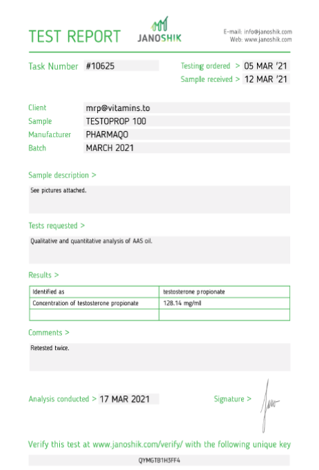 Immediate-effect Testosterone Propionate is a product for a mass-building cycle. Testosterone Propionate delivers significant gains in mass and strength, but with the added benefit of minimal water retention.