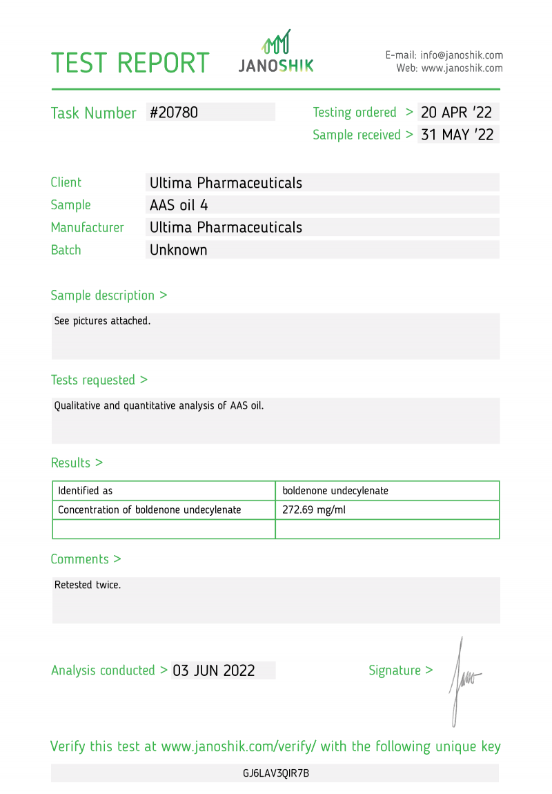 - Product and Laboratory: BOLDENONE UNDECYLENATE by Ultima Pharma
