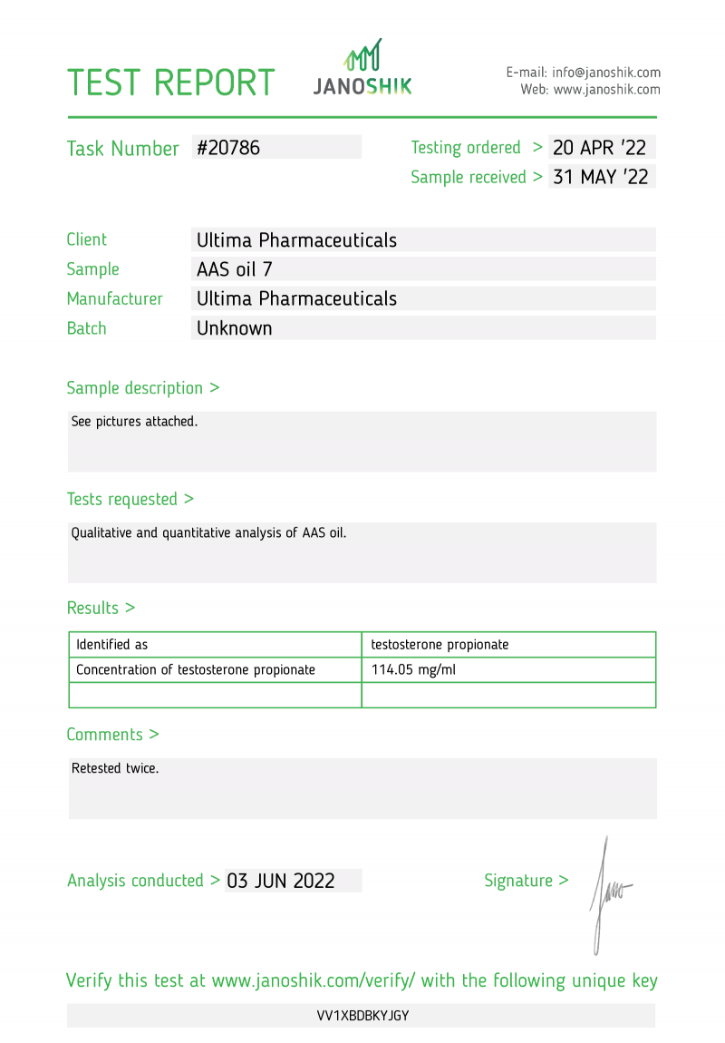 - Product and Laboratory: Testosterone Propionate by UltimaPharma