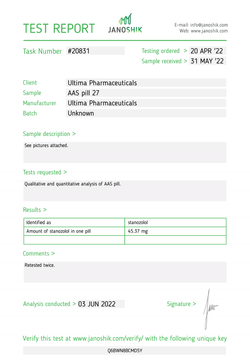 - Product and Laboratory: Stanozolol (Winstrol) by UltimaPharma