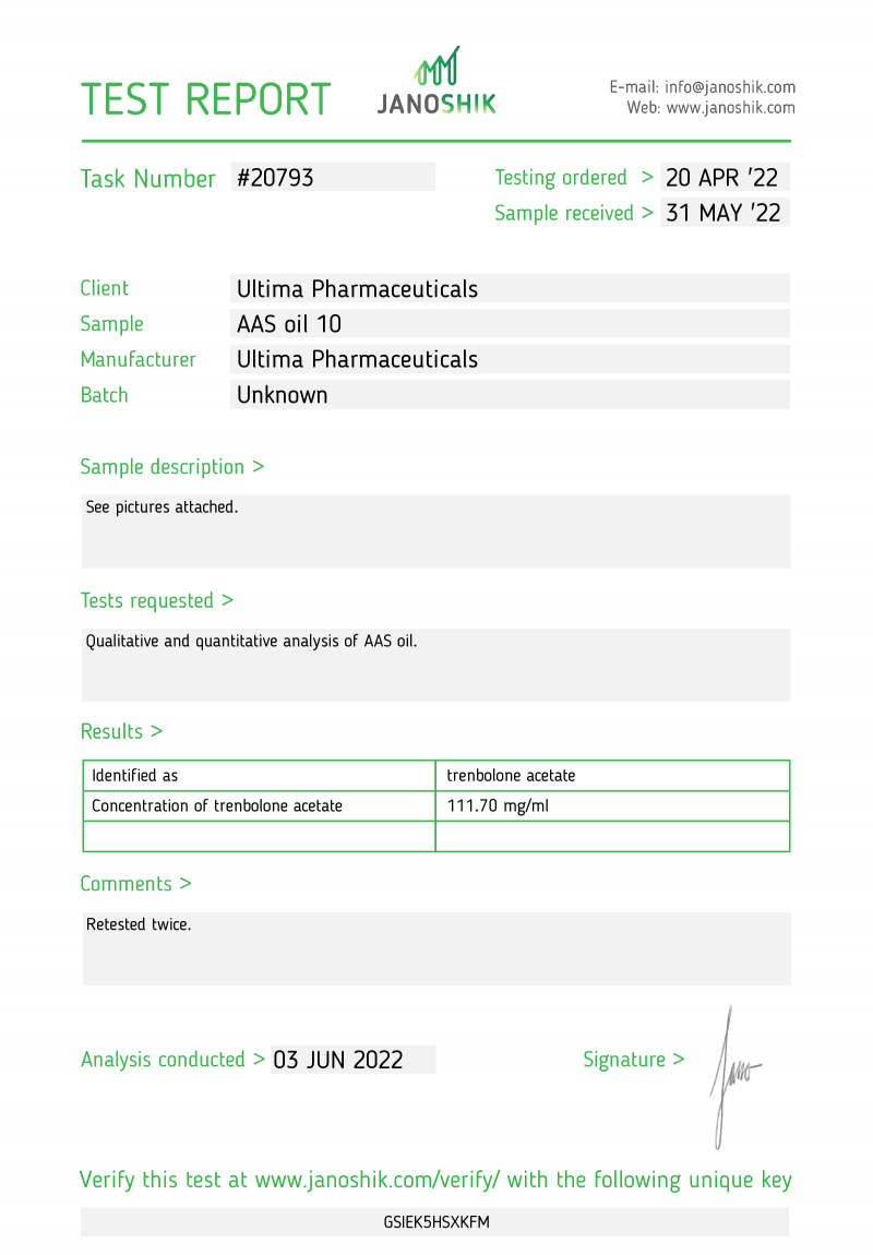 - Product and Laboratory: Trenbolone Acetate by UltimaPharma
